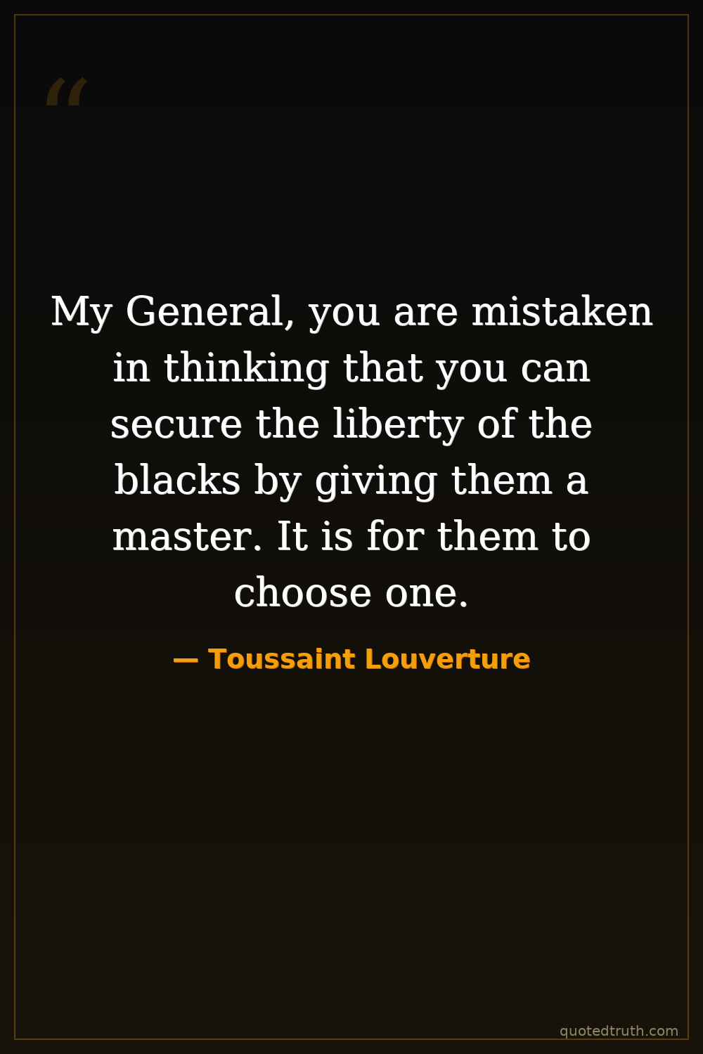 My General, you are mistaken in thinking that you can secure the liberty of the blacks by giving them a master. It is for them to choose one.