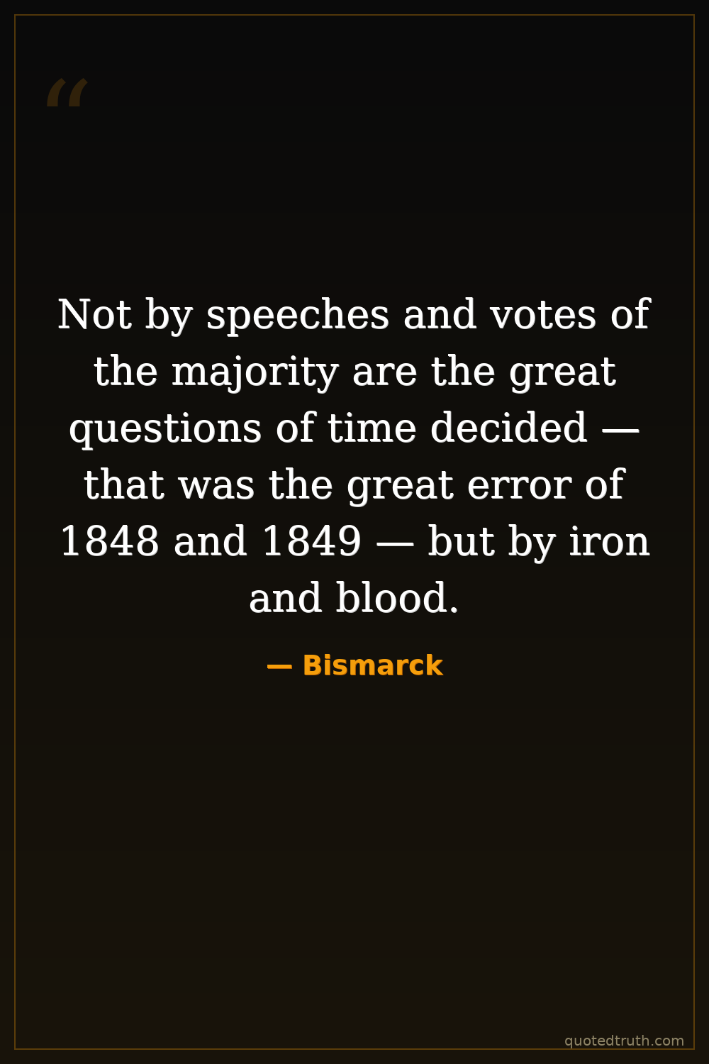 Not by speeches and votes of the majority are the great questions of time decided — that was the great error of 1848 and 1849 — but by iron and blood.