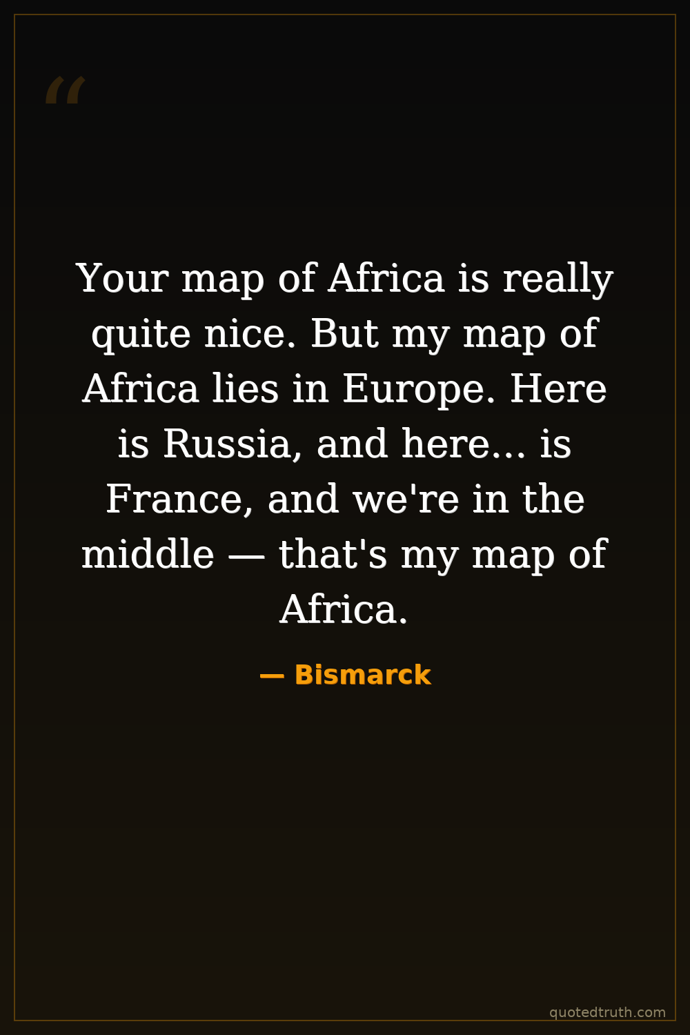 A dismissive remark about colonial ambitions in Africa, emphasizing his focus on European power politics.