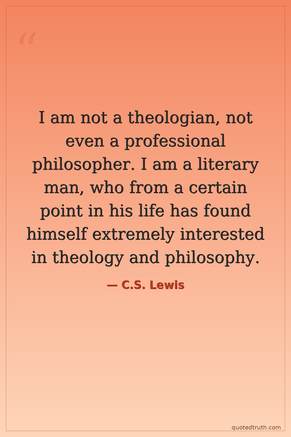 I am not a theologian, not even a professional philosopher. I am a literary man, who from a certain point in his life has found himself extremely interested in theology and philosophy.