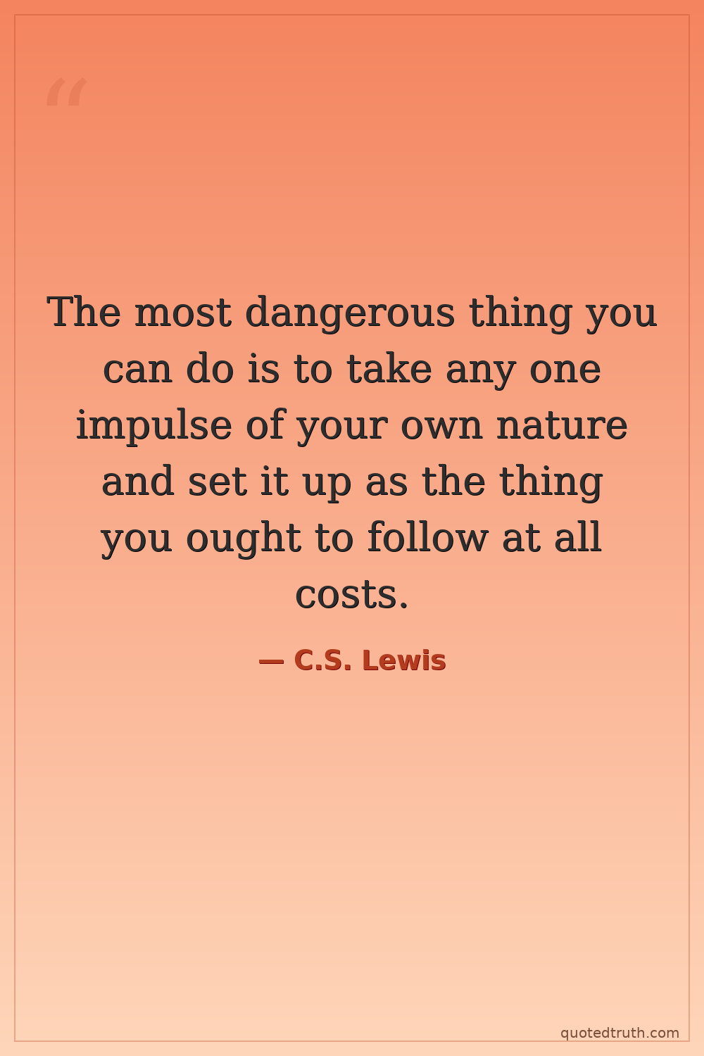 The most dangerous thing you can do is to take any one impulse of your own nature and set it up as the thing you ought to follow at all costs.