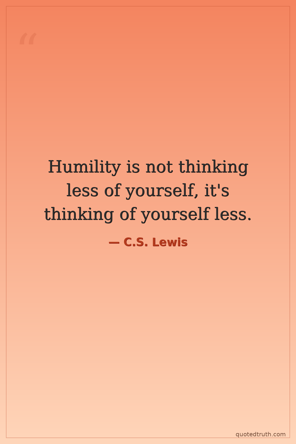 Humility is not thinking less of yourself, it's thinking of yourself less.