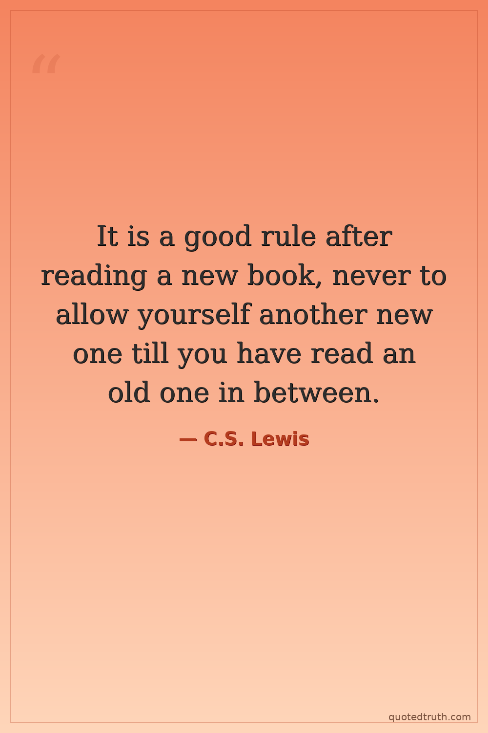 It is a good rule after reading a new book, never to allow yourself another new one till you have read an old one in between.