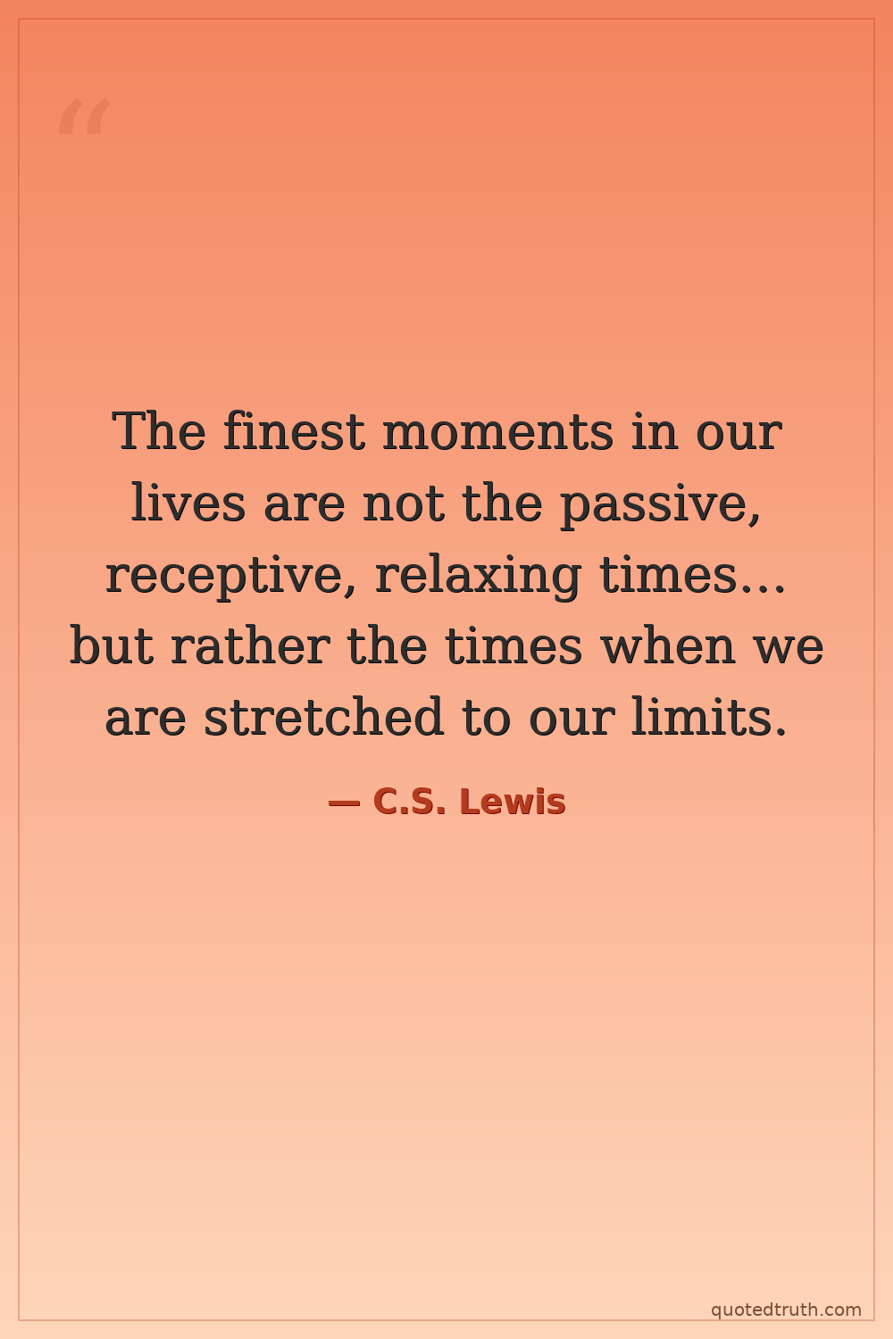 The finest moments in our lives are not the passive, receptive, relaxing times… but rather the times when we are stretched to our limits.
