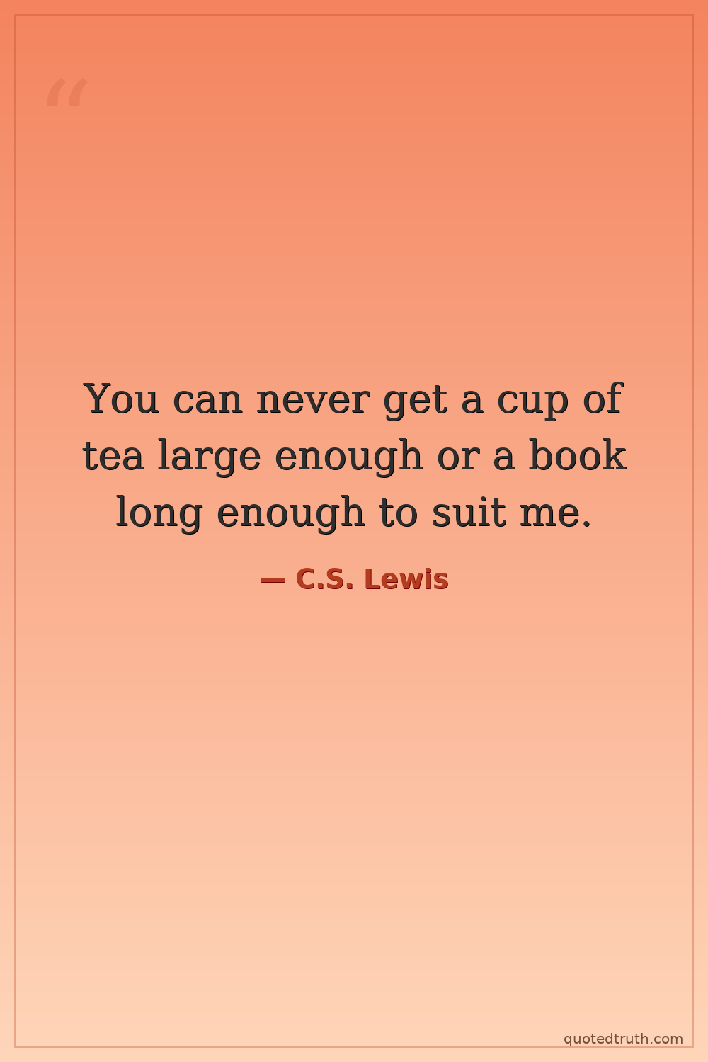 You can never get a cup of tea large enough or a book long enough to suit me.