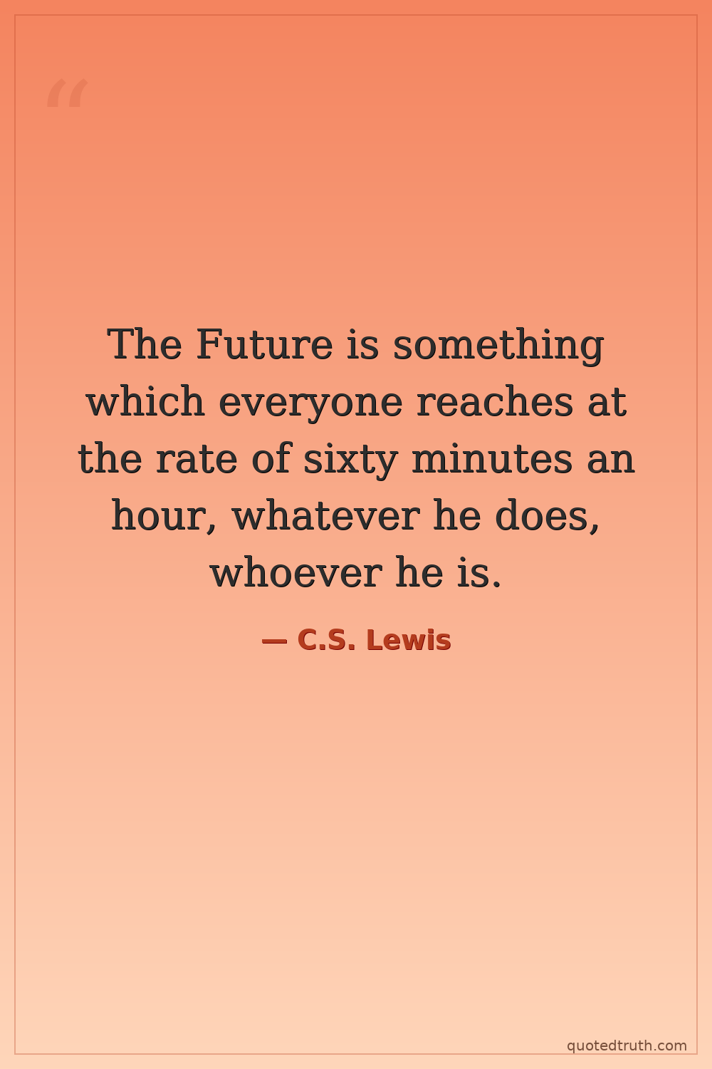 The Future is something which everyone reaches at the rate of sixty minutes an hour, whatever he does, whoever he is.