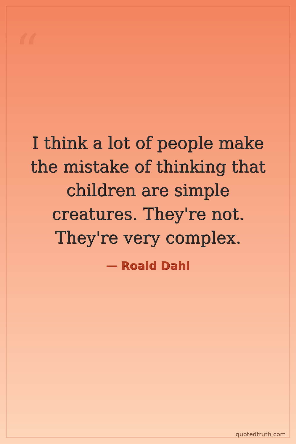 I think a lot of people make the mistake of thinking that children are simple creatures. They're not. They're very complex.