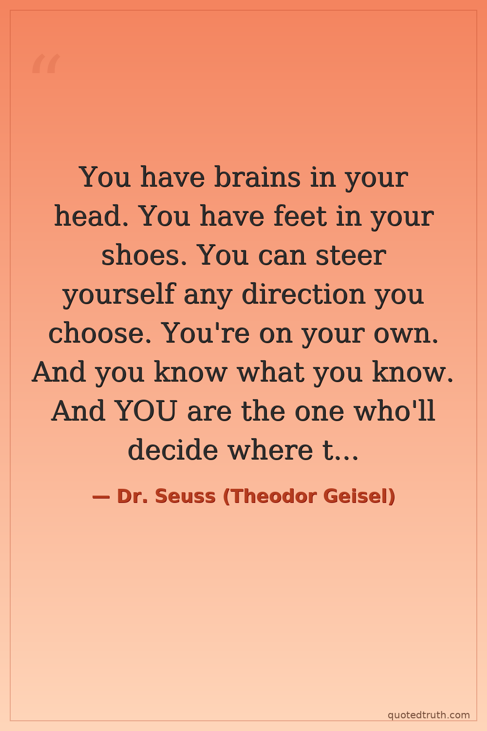 You have brains in your head. You have feet in your shoes. You can steer yourself any direction you choose. You're on your own. And you know what you know. And YOU are the one who'll decide where to go...
