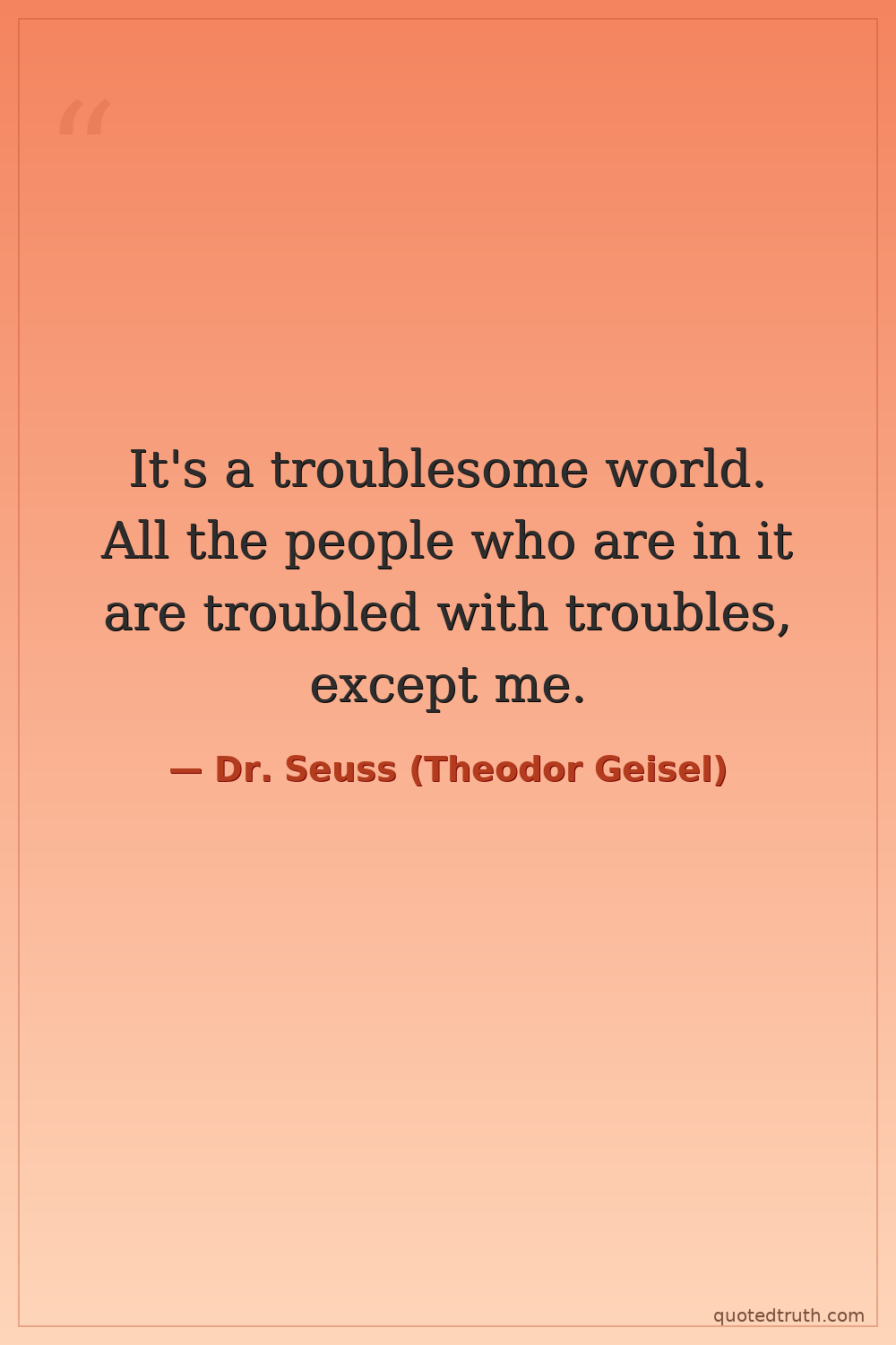 It's a troublesome world. All the people who are in it are troubled with troubles, except me.
