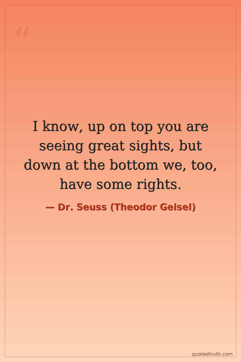 I know, up on top you are seeing great sights, but down at the bottom we, too, have some rights.