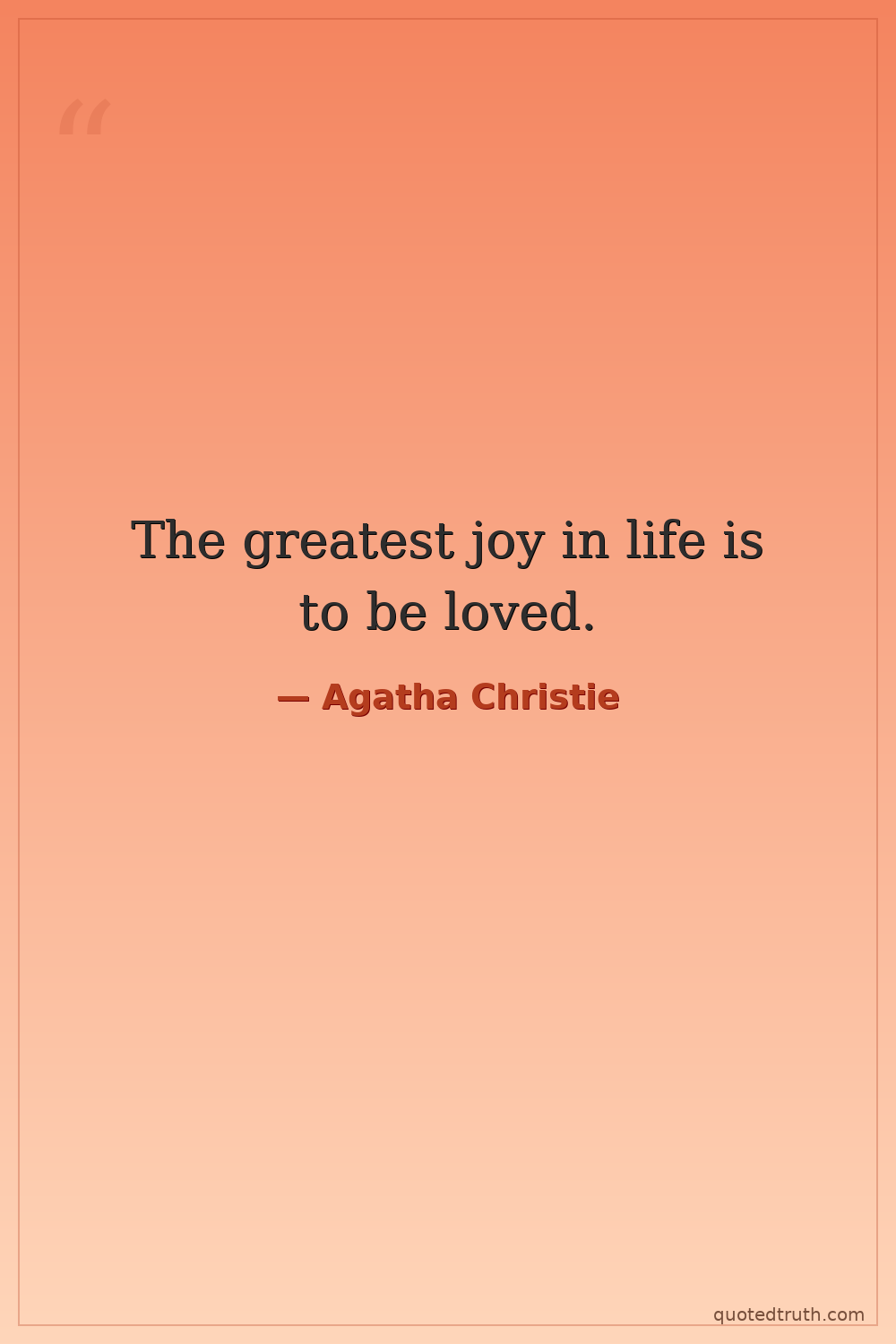 The greatest joy in life is to be loved.