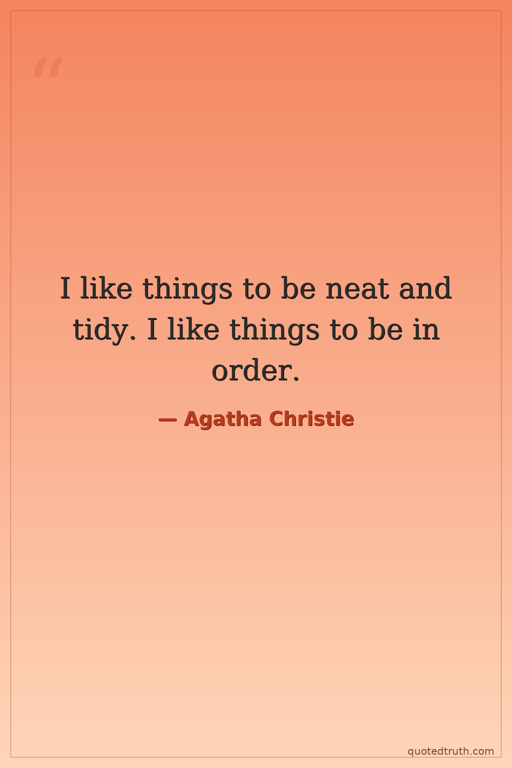 I like things to be neat and tidy. I like things to be in order.