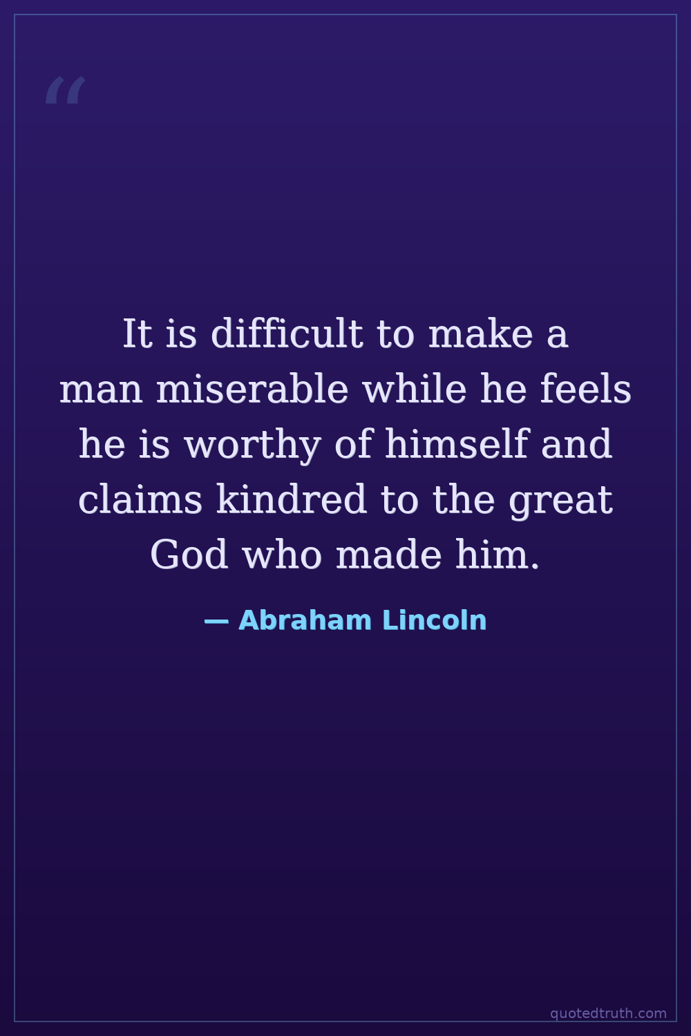 It is difficult to make a man miserable while he feels he is worthy of himself and claims kindred to the great God who made him.