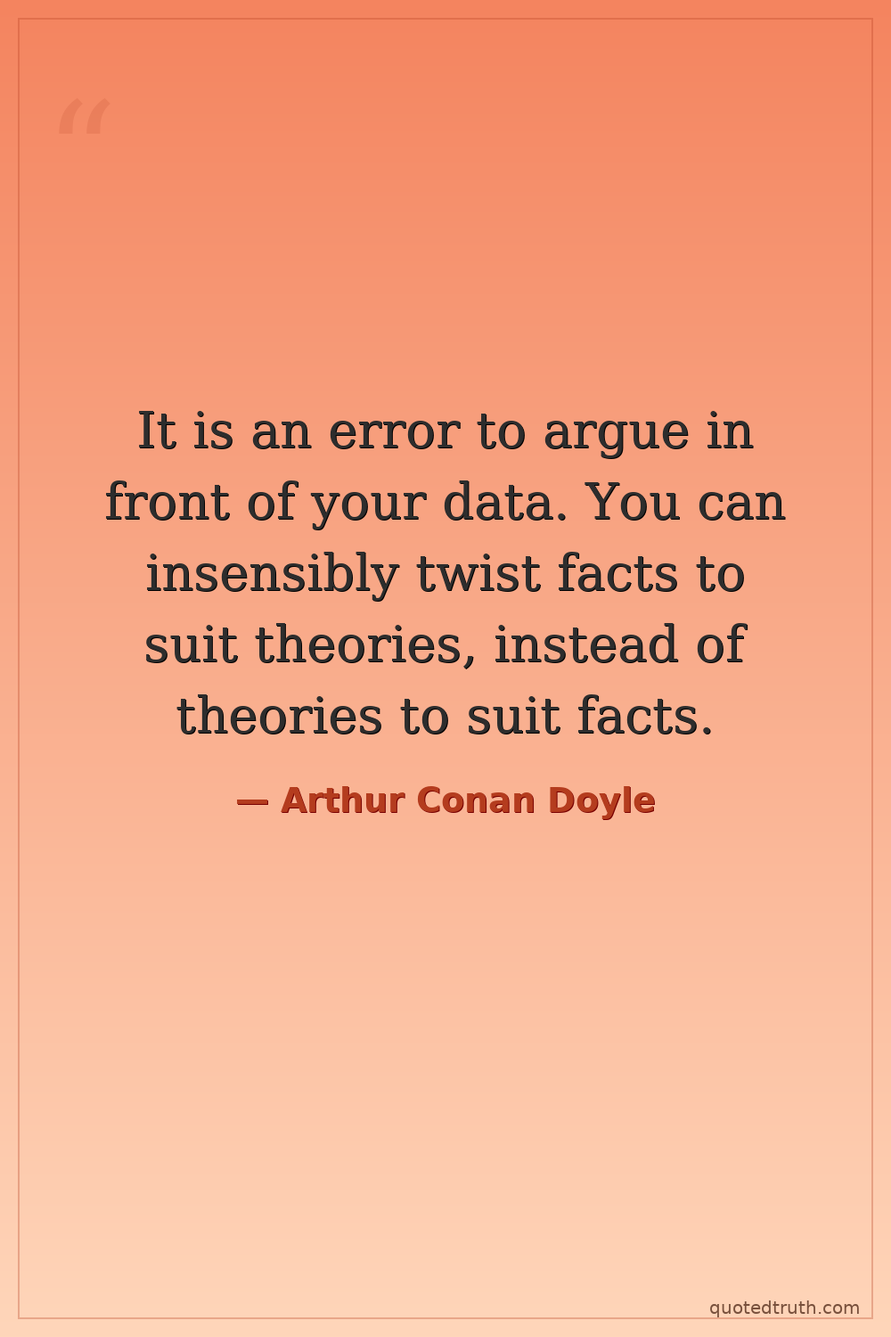 It is an error to argue in front of your data. You can insensibly twist facts to suit theories, instead of theories to suit facts.