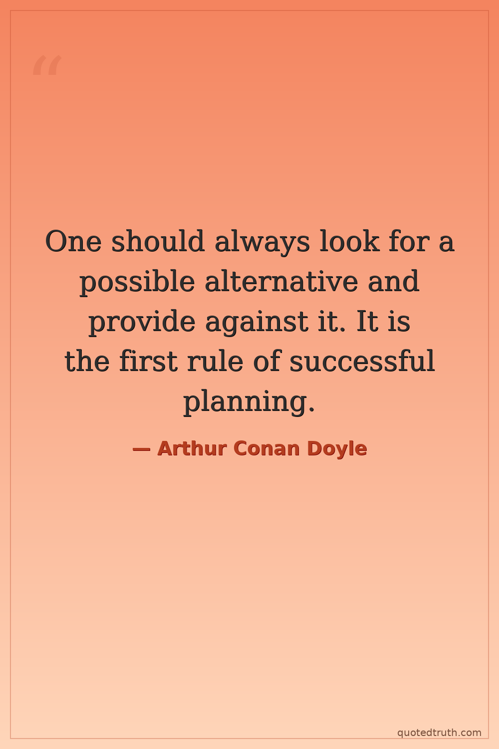 One should always look for a possible alternative and provide against it. It is the first rule of successful planning.
