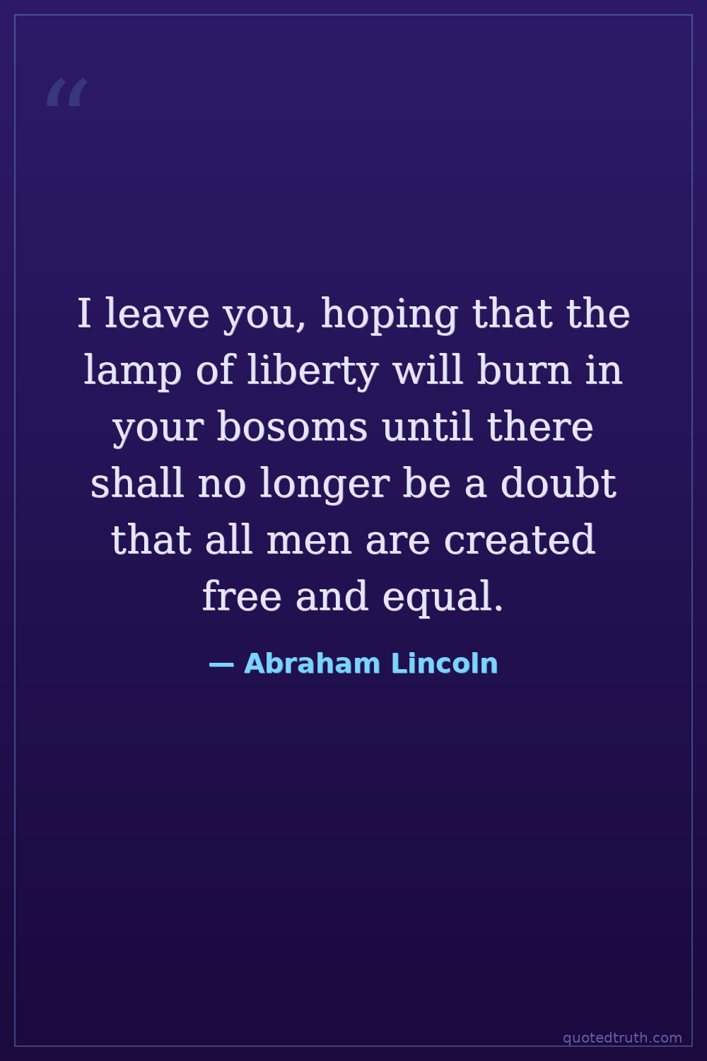 I leave you, hoping that the lamp of liberty will burn in your bosoms until there shall no longer be a doubt that all men are created free and equal.