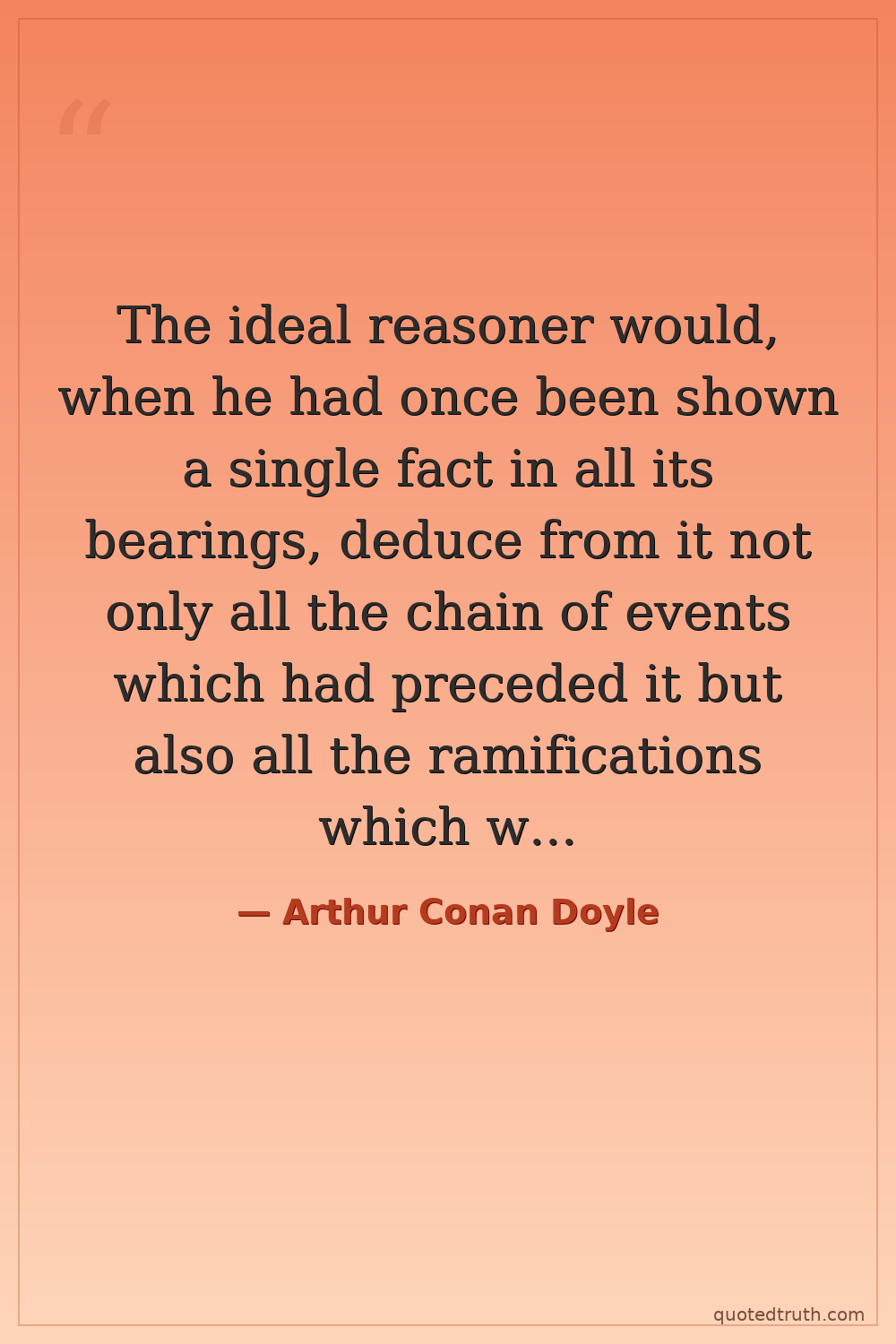 The ideal reasoner would, when he had once been shown a single fact in all its bearings, deduce from it not only all the chain of events which had preceded it but also all the ramifications which would follow.