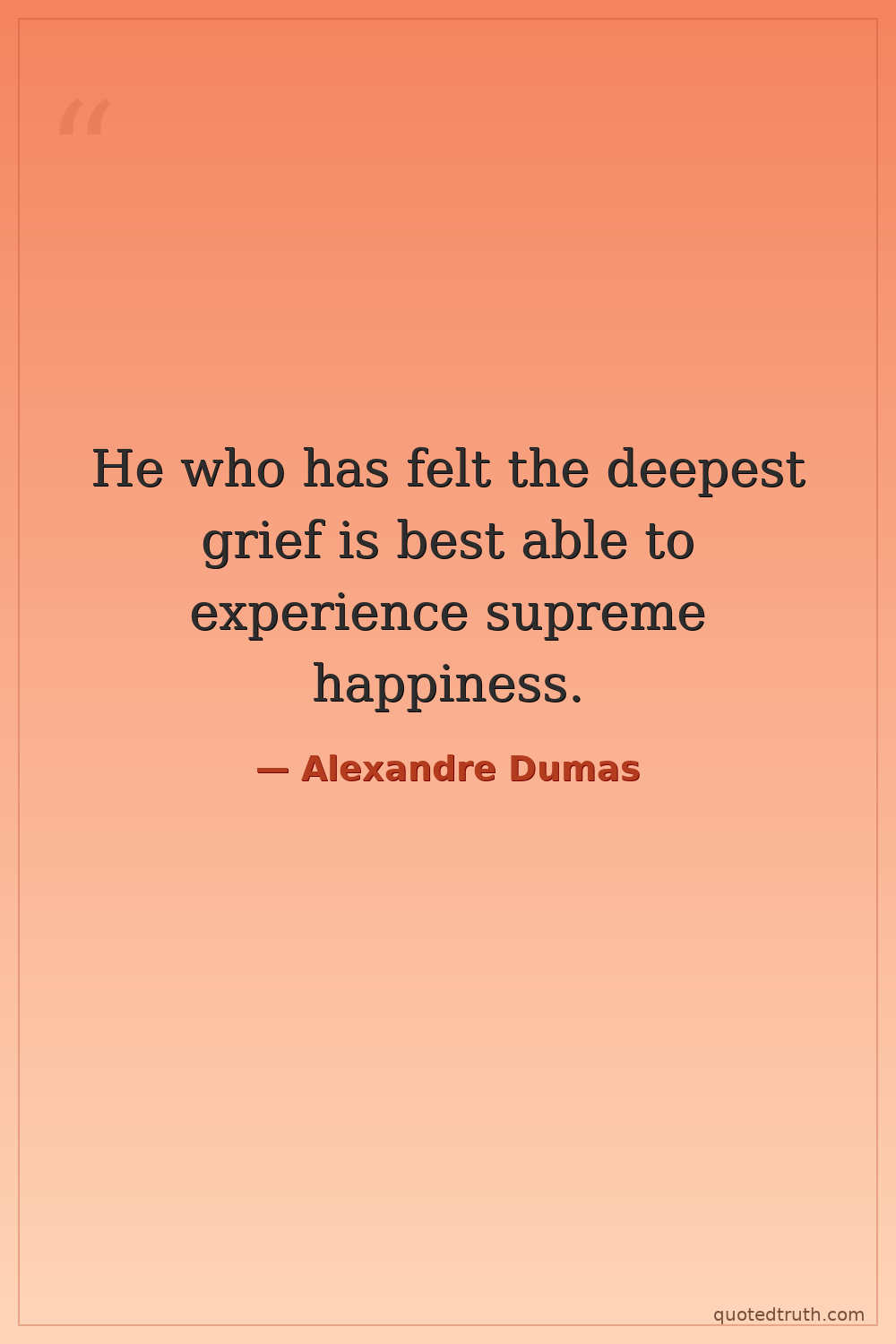 He who has felt the deepest grief is best able to experience supreme happiness.