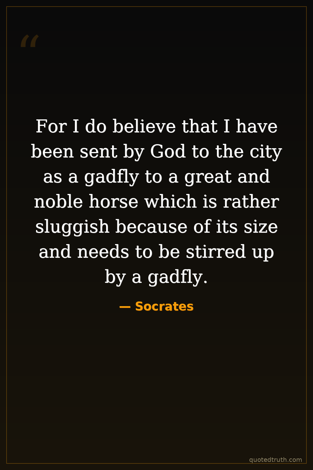 For I do believe that I have been sent by God to the city as a gadfly to a great and noble horse which is rather sluggish because of its size and needs to be stirred up by a gadfly.