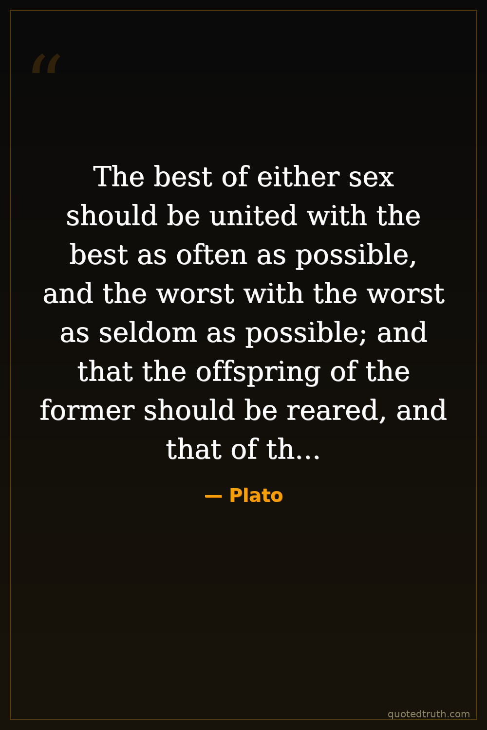The best of either sex should be united with the best as often as possible, and the worst with the worst as seldom as possible; and that the offspring of the former should be reared, and that of the second destroyed.