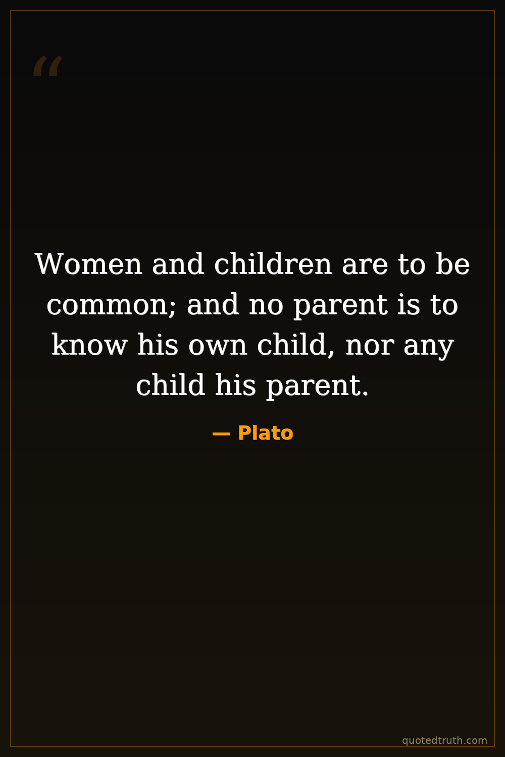 Women and children are to be common; and no parent is to know his own child, nor any child his parent.