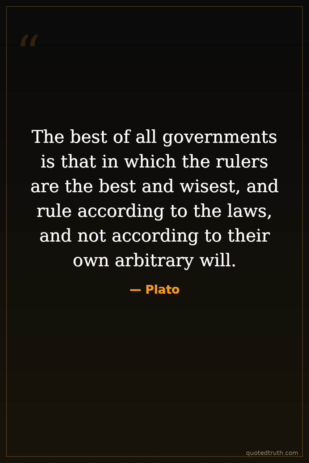 The best of all governments is that in which the rulers are the best and wisest, and rule according to the laws, and not according to their own arbitrary will.