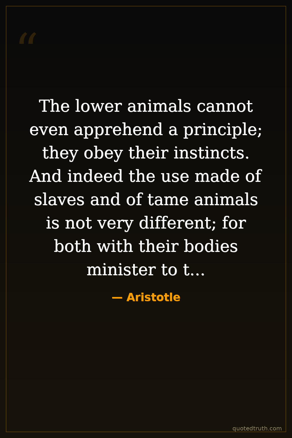 The lower animals cannot even apprehend a principle; they obey their instincts. And indeed the use made of slaves and of tame animals is not very different; for both with their bodies minister to the needs of life.