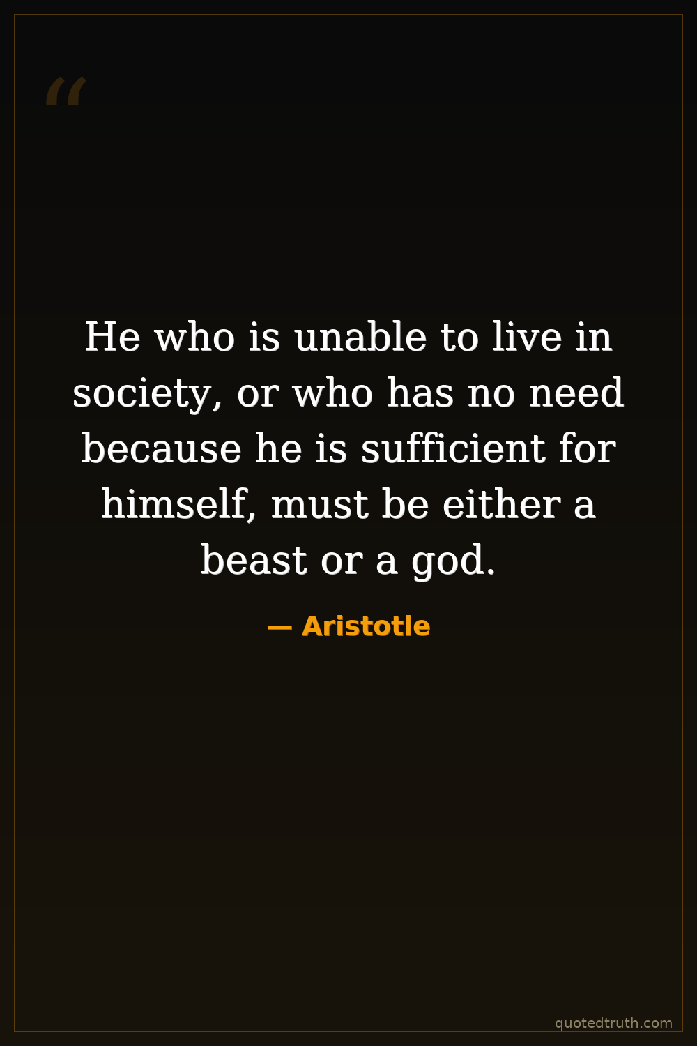 He who is unable to live in society, or who has no need because he is sufficient for himself, must be either a beast or a god.