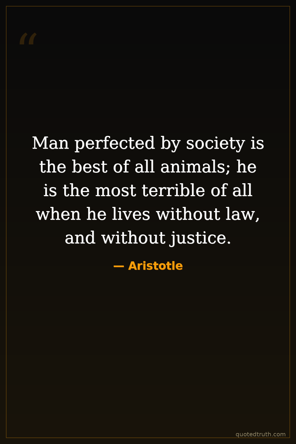 Man perfected by society is the best of all animals; he is the most terrible of all when he lives without law, and without justice.