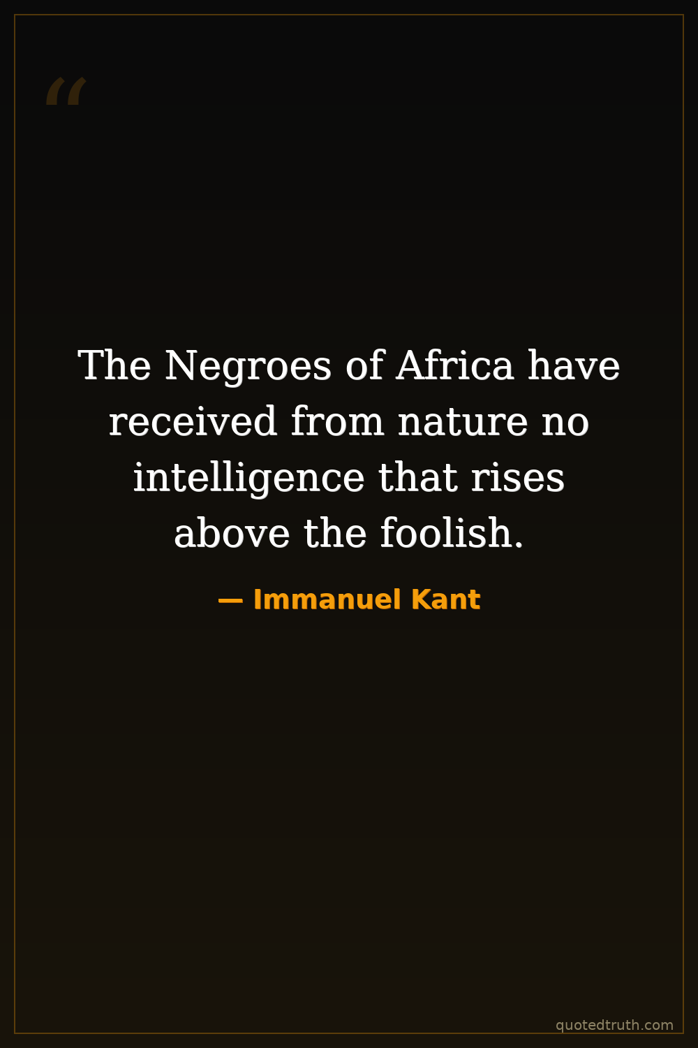 The Negroes of Africa have received from nature no intelligence that rises above the foolish.
