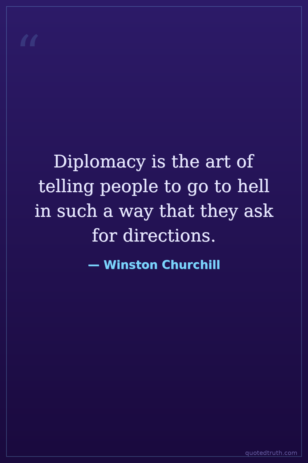 Diplomacy is the art of telling people to go to hell in such a way that they ask for directions.