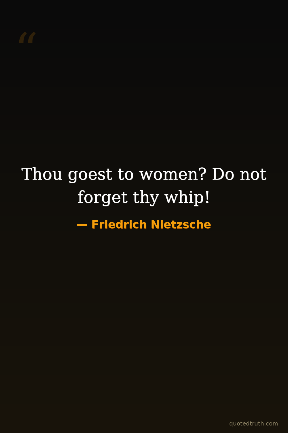 Thou goest to women? Do not forget thy whip!