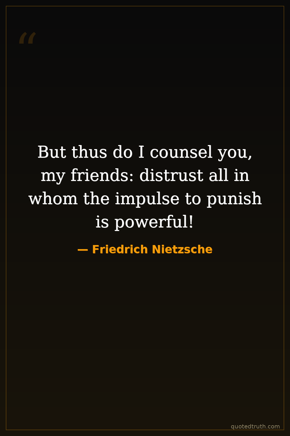 But thus do I counsel you, my friends: distrust all in whom the impulse to punish is powerful!