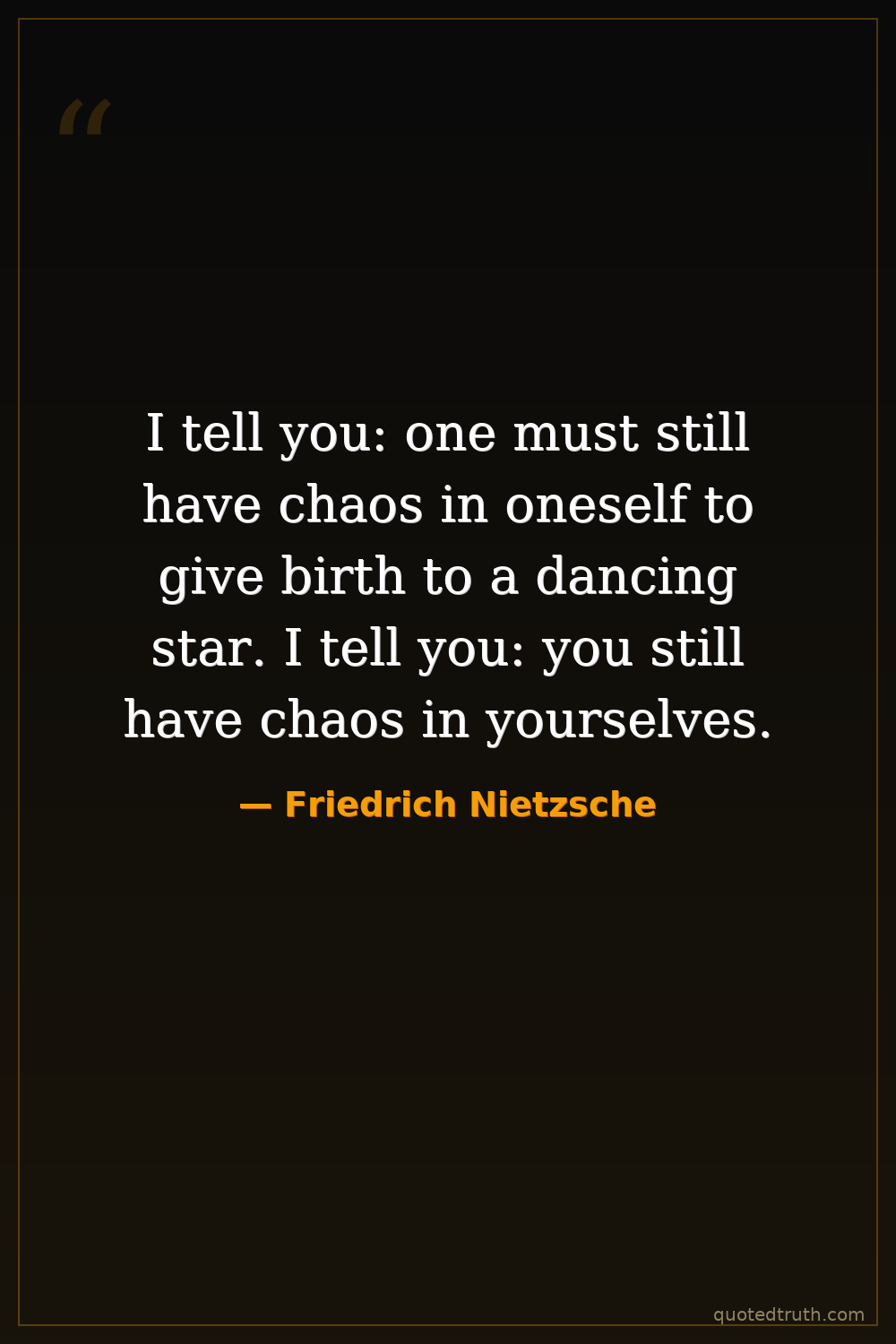 I tell you: one must still have chaos in oneself to give birth to a dancing star. I tell you: you still have chaos in yourselves.