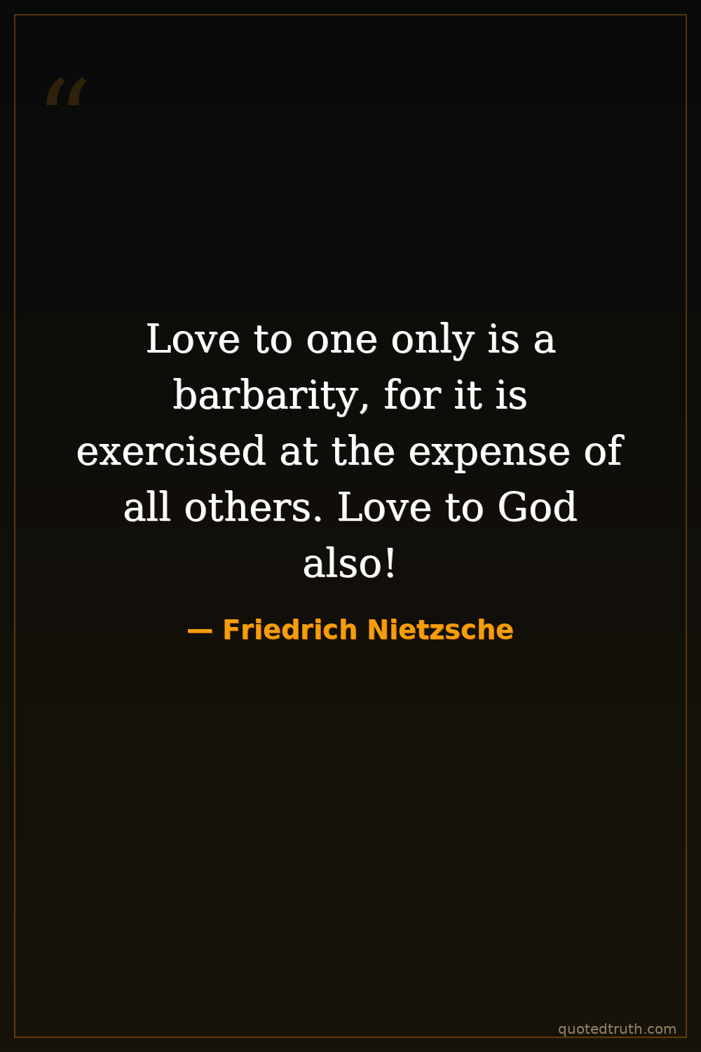 Love to one only is a barbarity, for it is exercised at the expense of all others. Love to God also!
