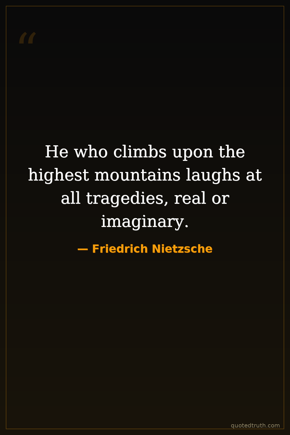 He who climbs upon the highest mountains laughs at all tragedies, real or imaginary.