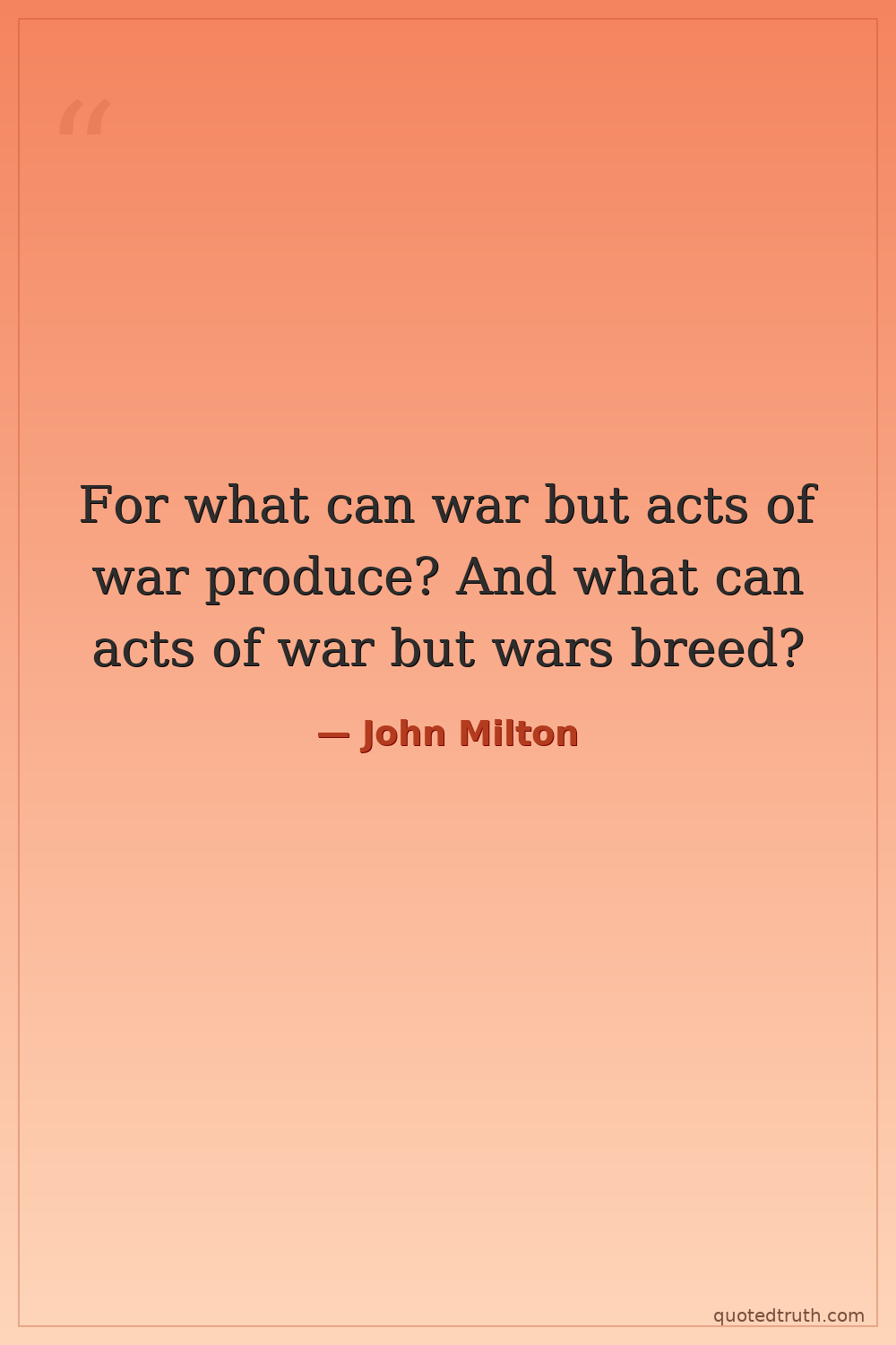 For what can war but acts of war produce? And what can acts of war but wars breed?