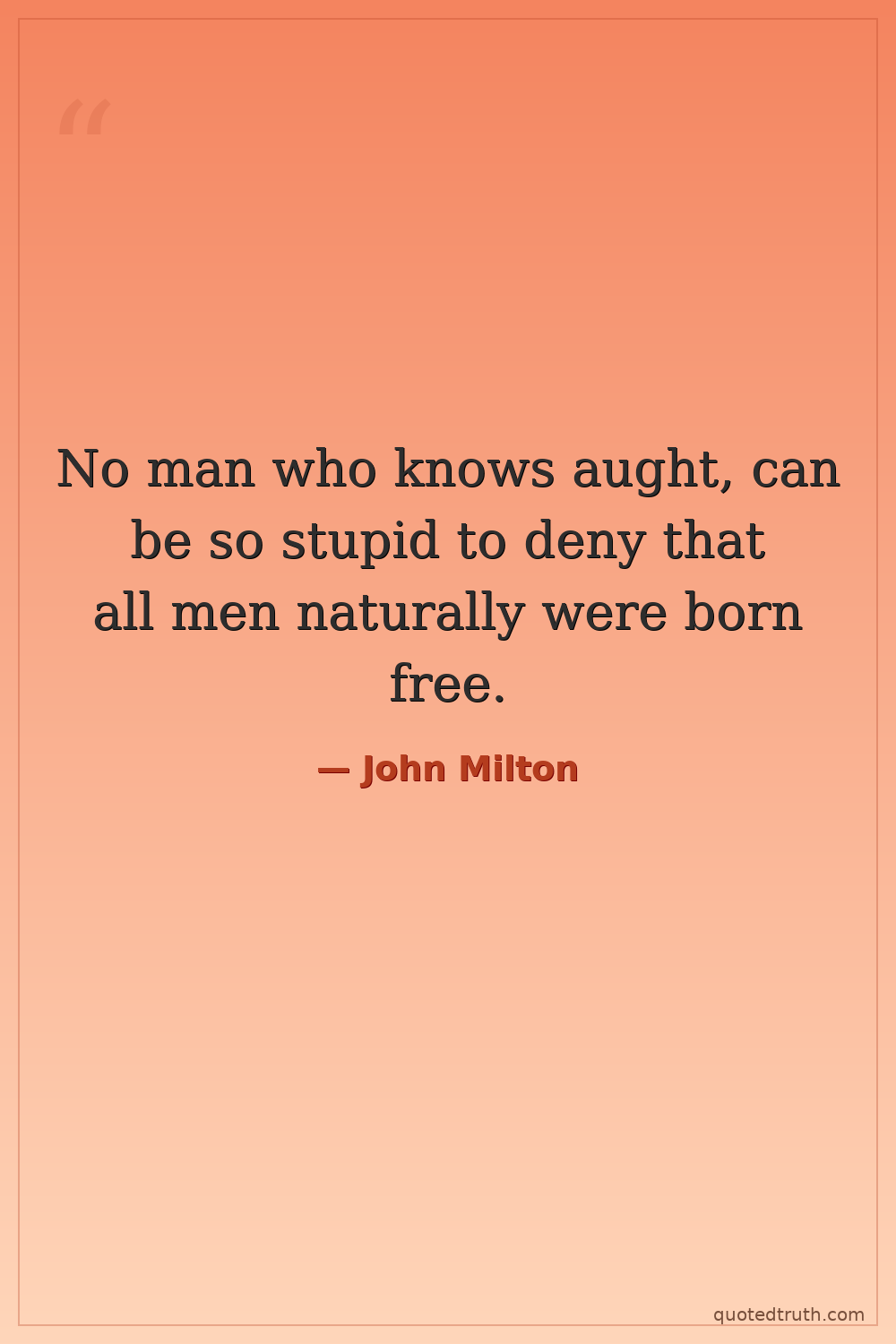 No man who knows aught, can be so stupid to deny that all men naturally were born free.