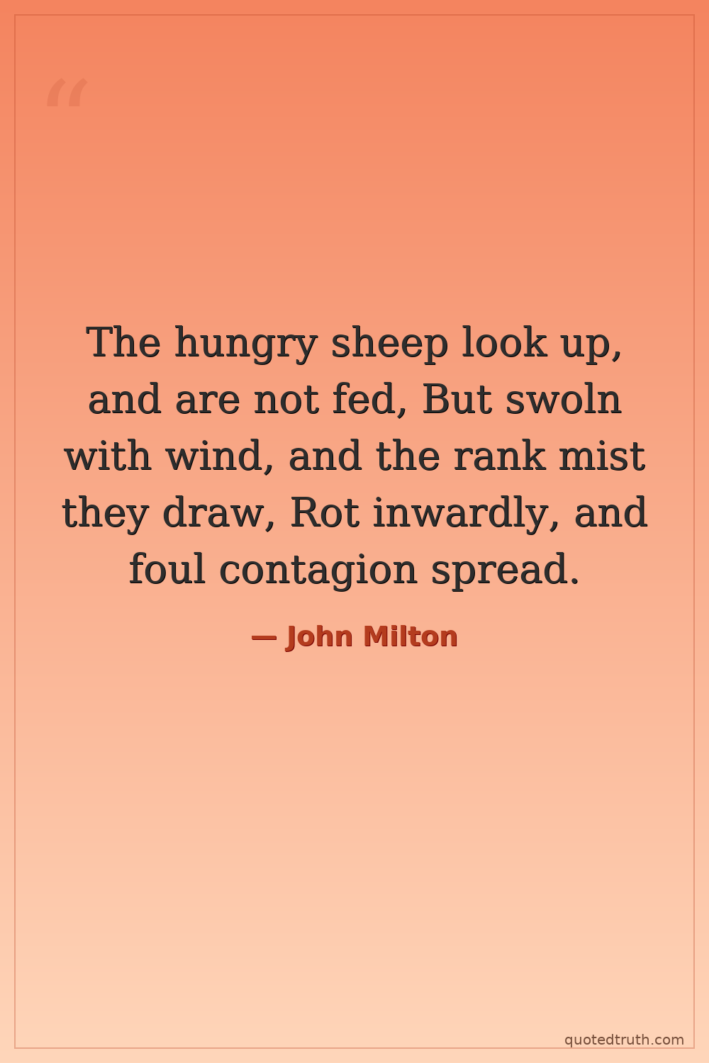 The hungry sheep look up, and are not fed, But swoln with wind, and the rank mist they draw, Rot inwardly, and foul contagion spread.