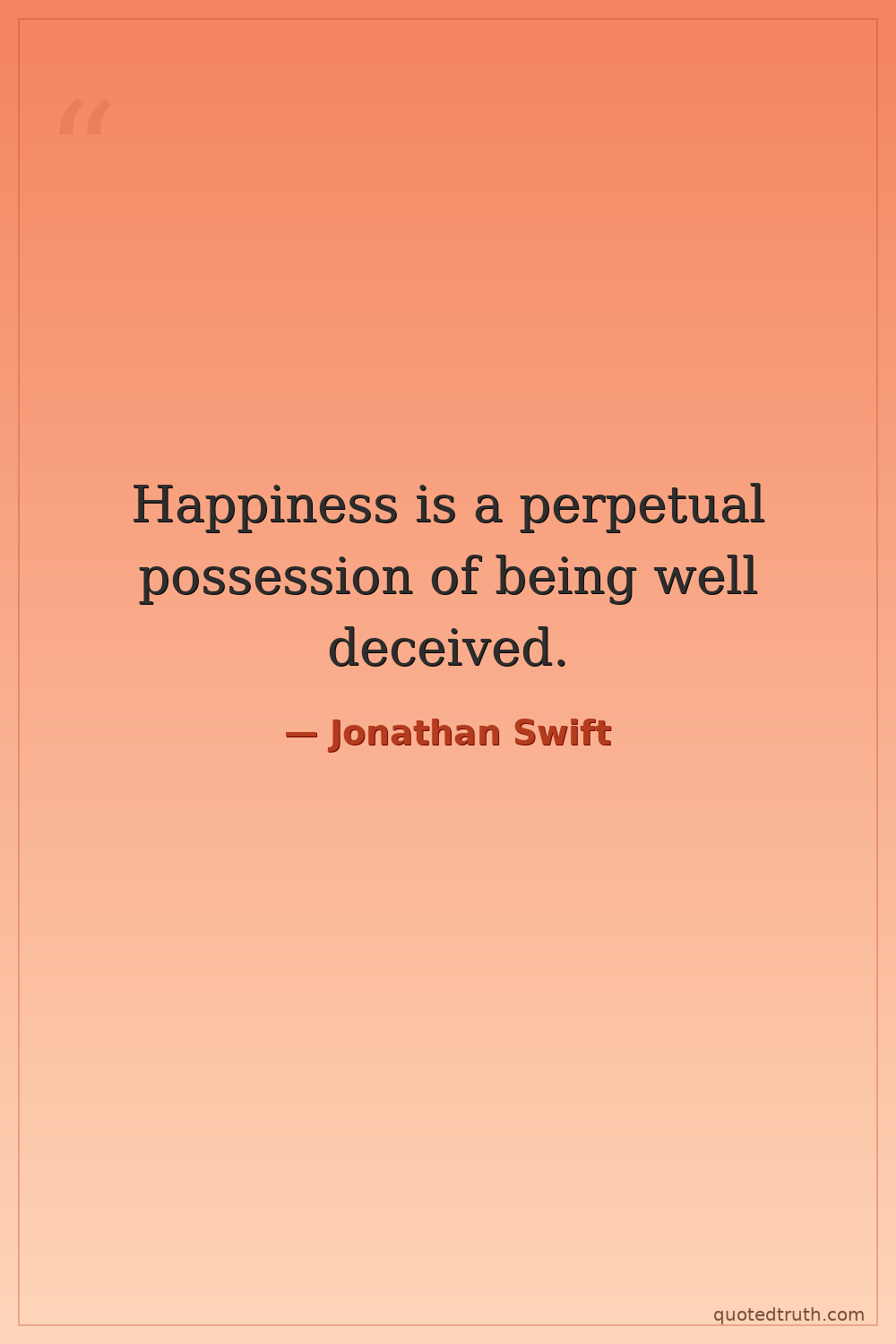 Happiness is a perpetual possession of being well deceived.