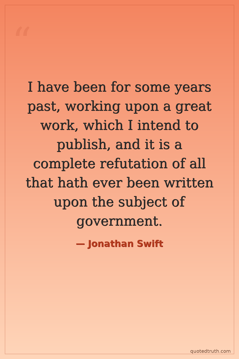 I have been for some years past, working upon a great work, which I intend to publish, and it is a complete refutation of all that hath ever been written upon the subject of government.