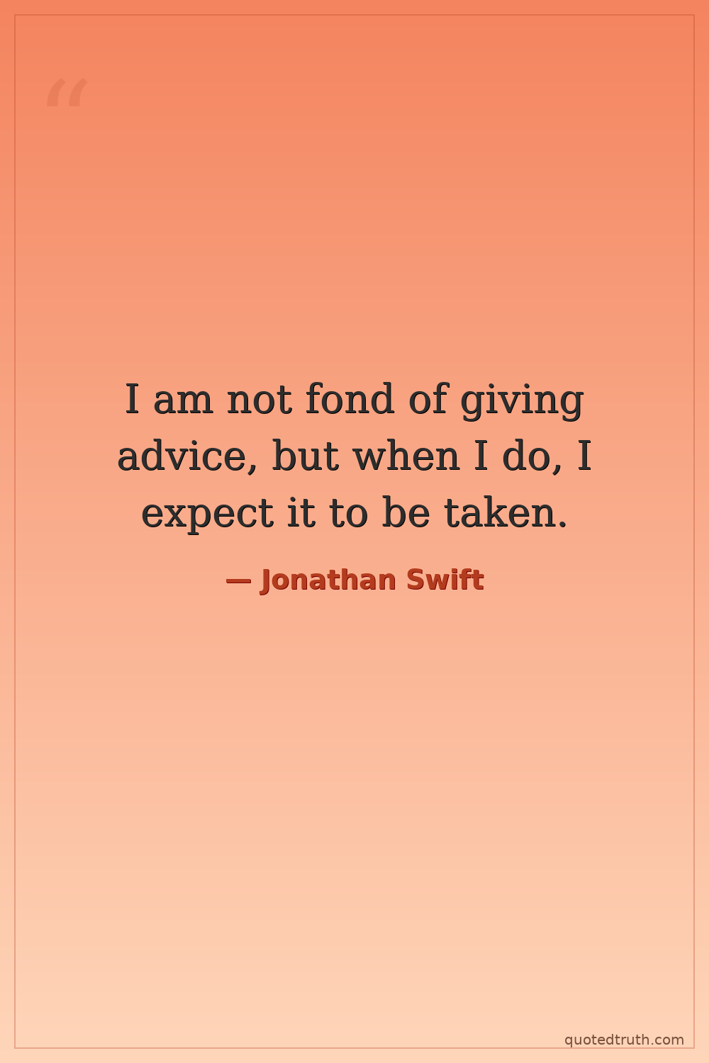 I am not fond of giving advice, but when I do, I expect it to be taken.