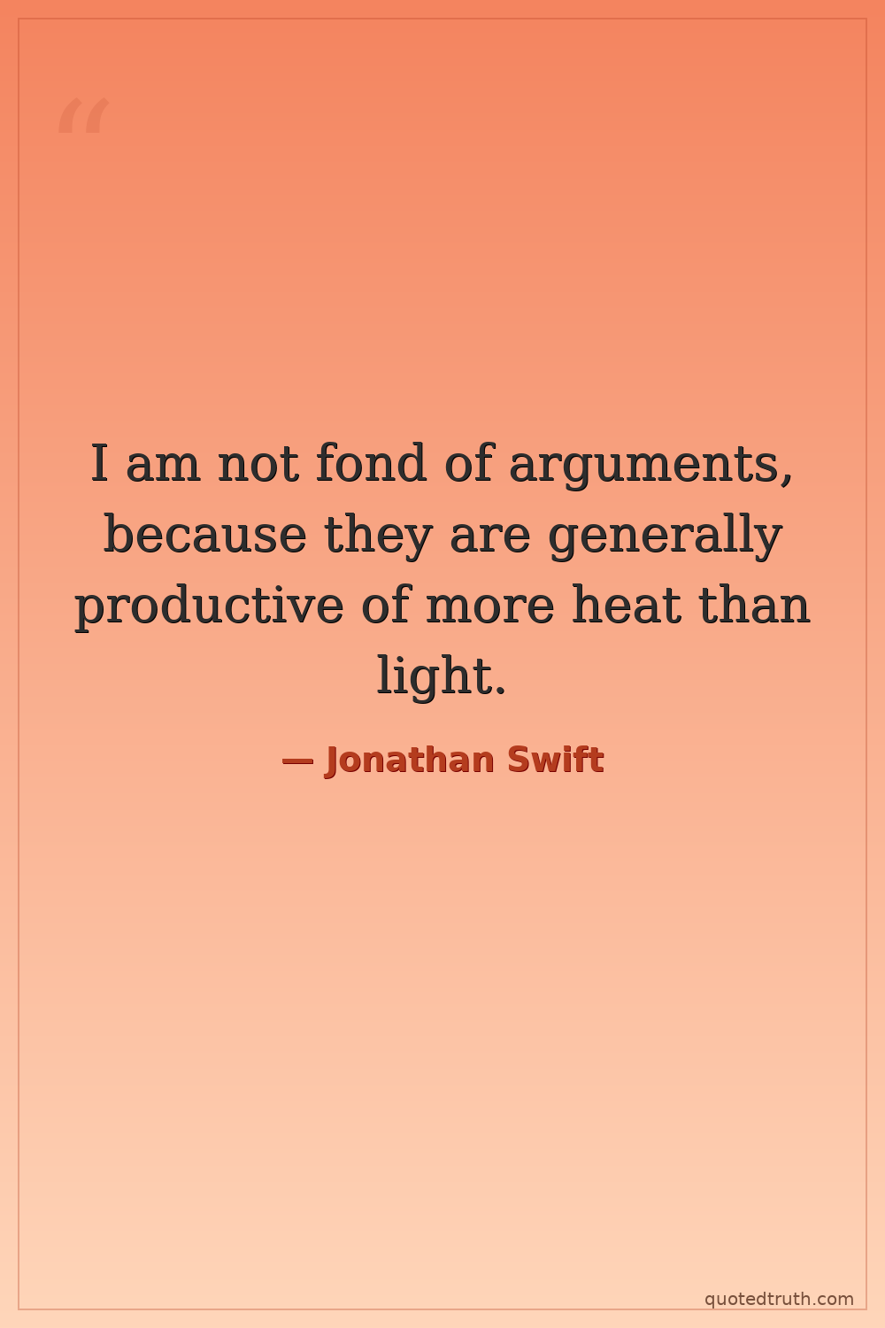 I am not fond of arguments, because they are generally productive of more heat than light.