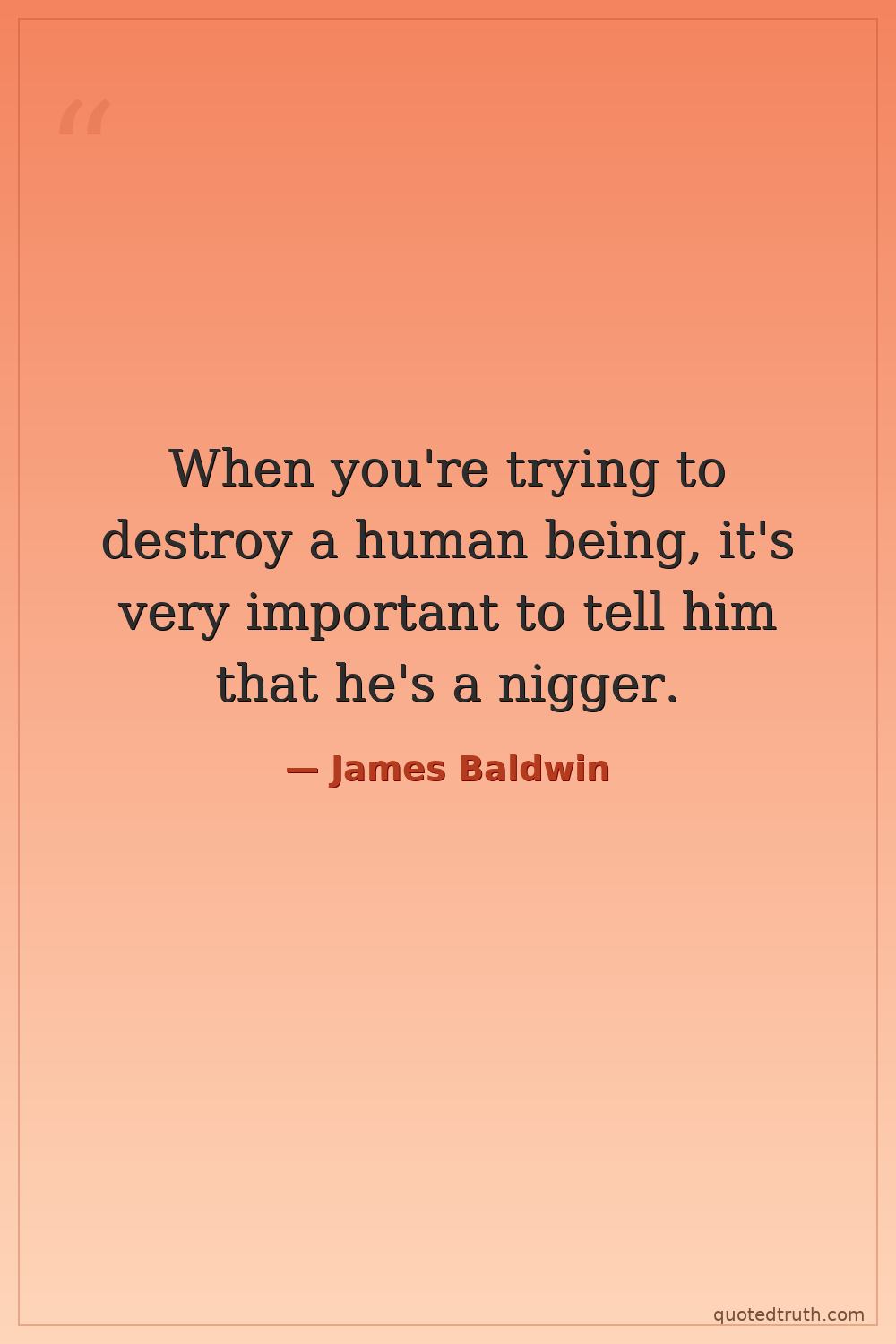 When you're trying to destroy a human being, it's very important to tell him that he's a nigger.