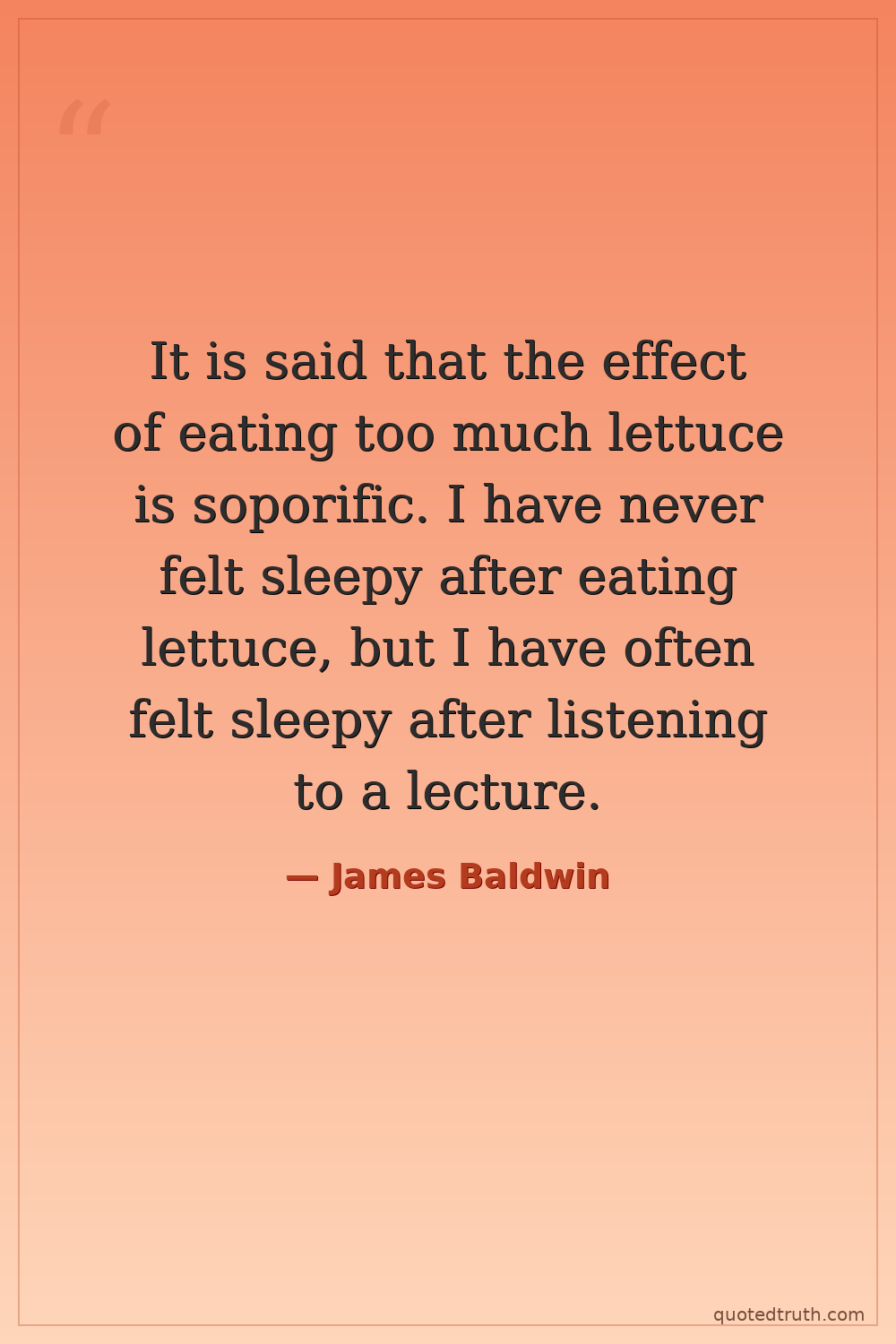 It is said that the effect of eating too much lettuce is soporific. I have never felt sleepy after eating lettuce, but I have often felt sleepy after listening to a lecture.