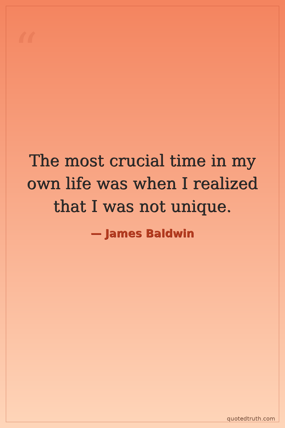 The most crucial time in my own life was when I realized that I was not unique.