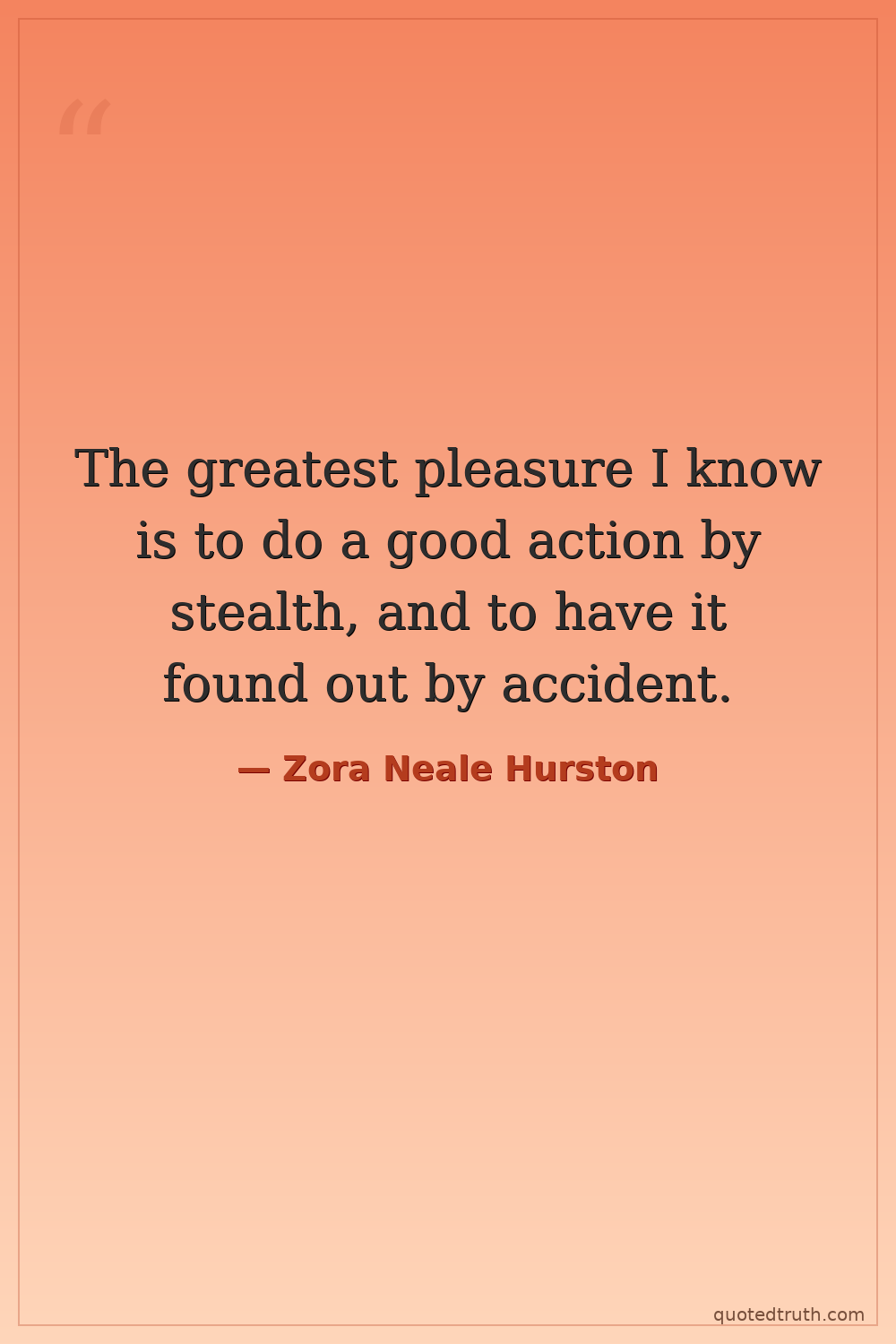 The greatest pleasure I know is to do a good action by stealth, and to have it found out by accident.