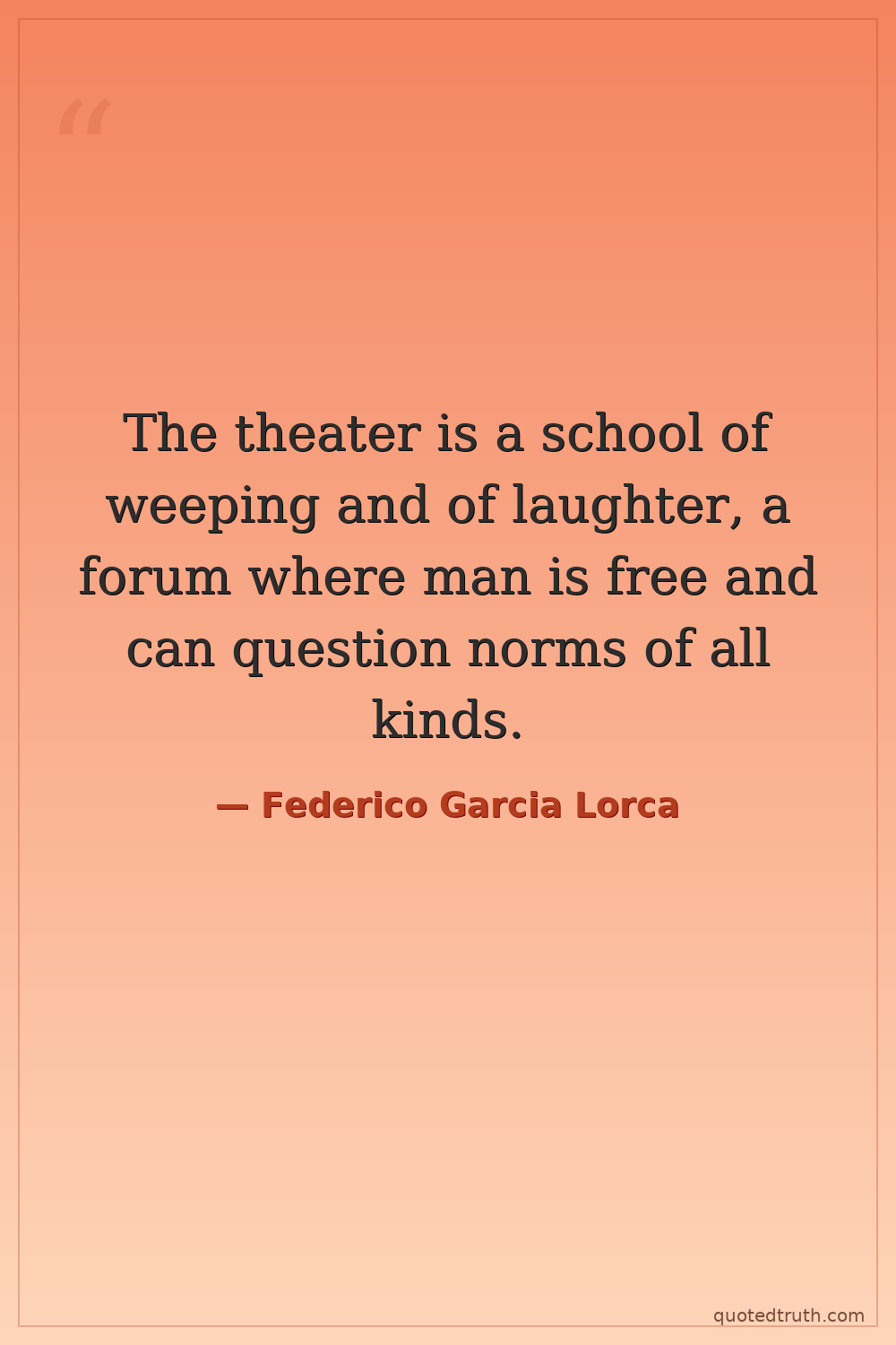 The theater is a school of weeping and of laughter, a forum where man is free and can question norms of all kinds.