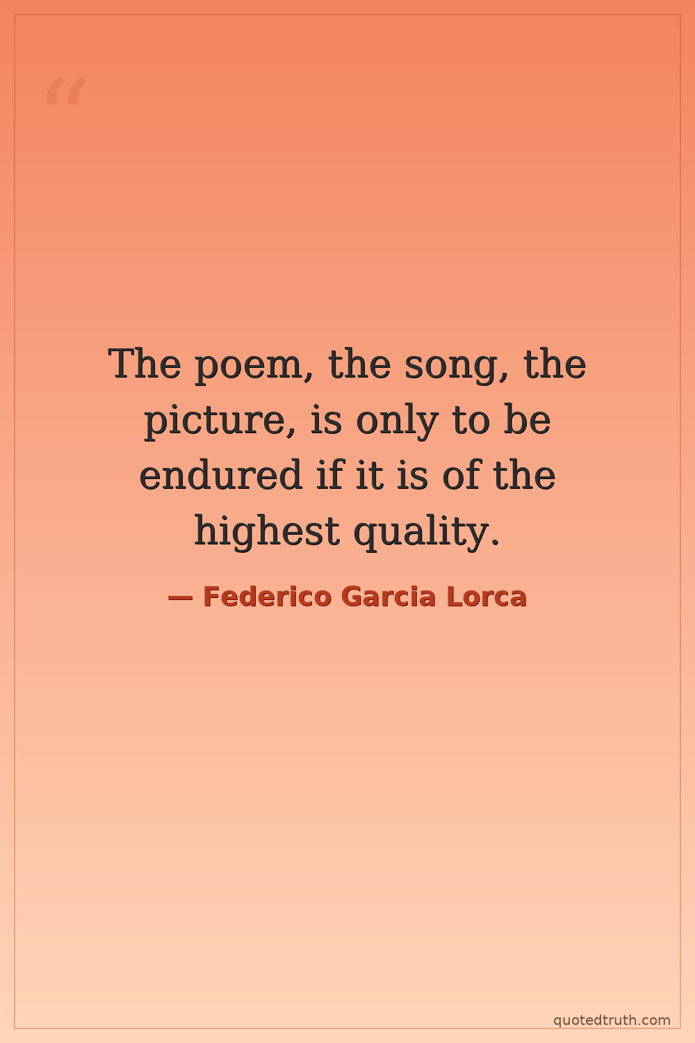 The poem, the song, the picture, is only to be endured if it is of the highest quality.