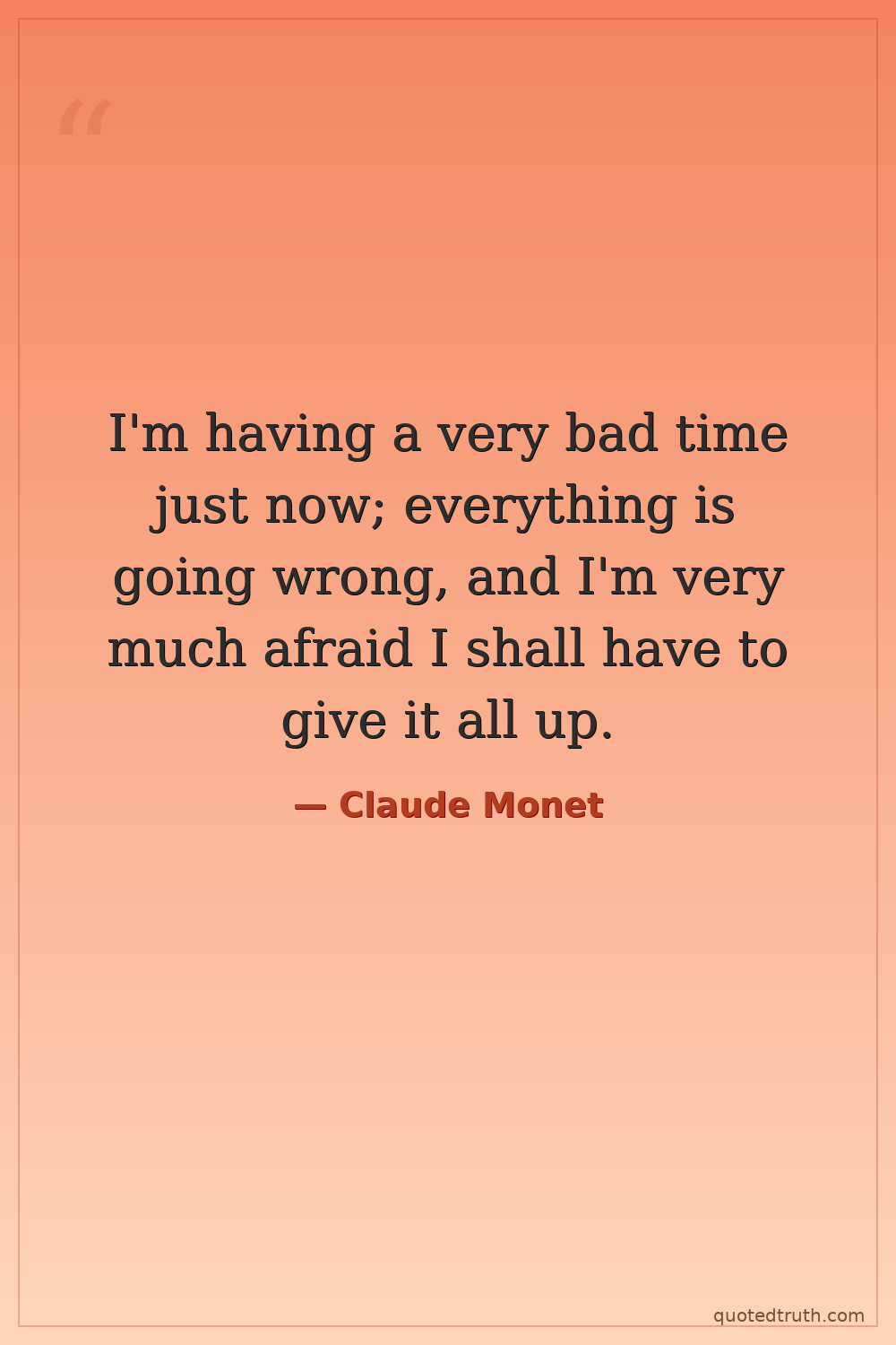 I'm having a very bad time just now; everything is going wrong, and I'm very much afraid I shall have to give it all up.